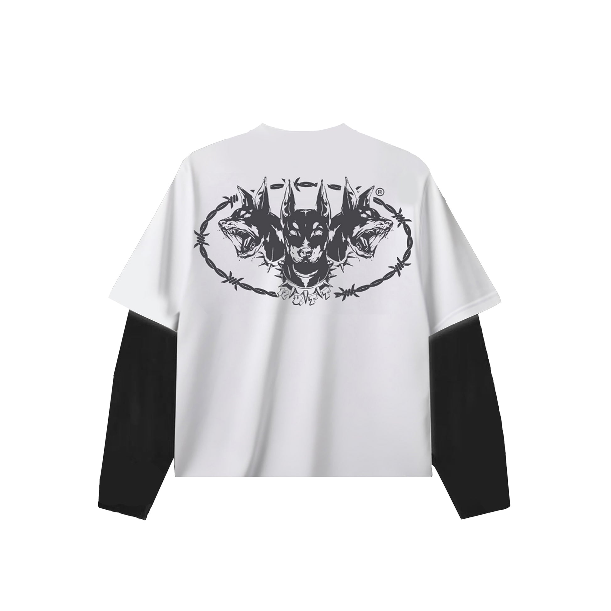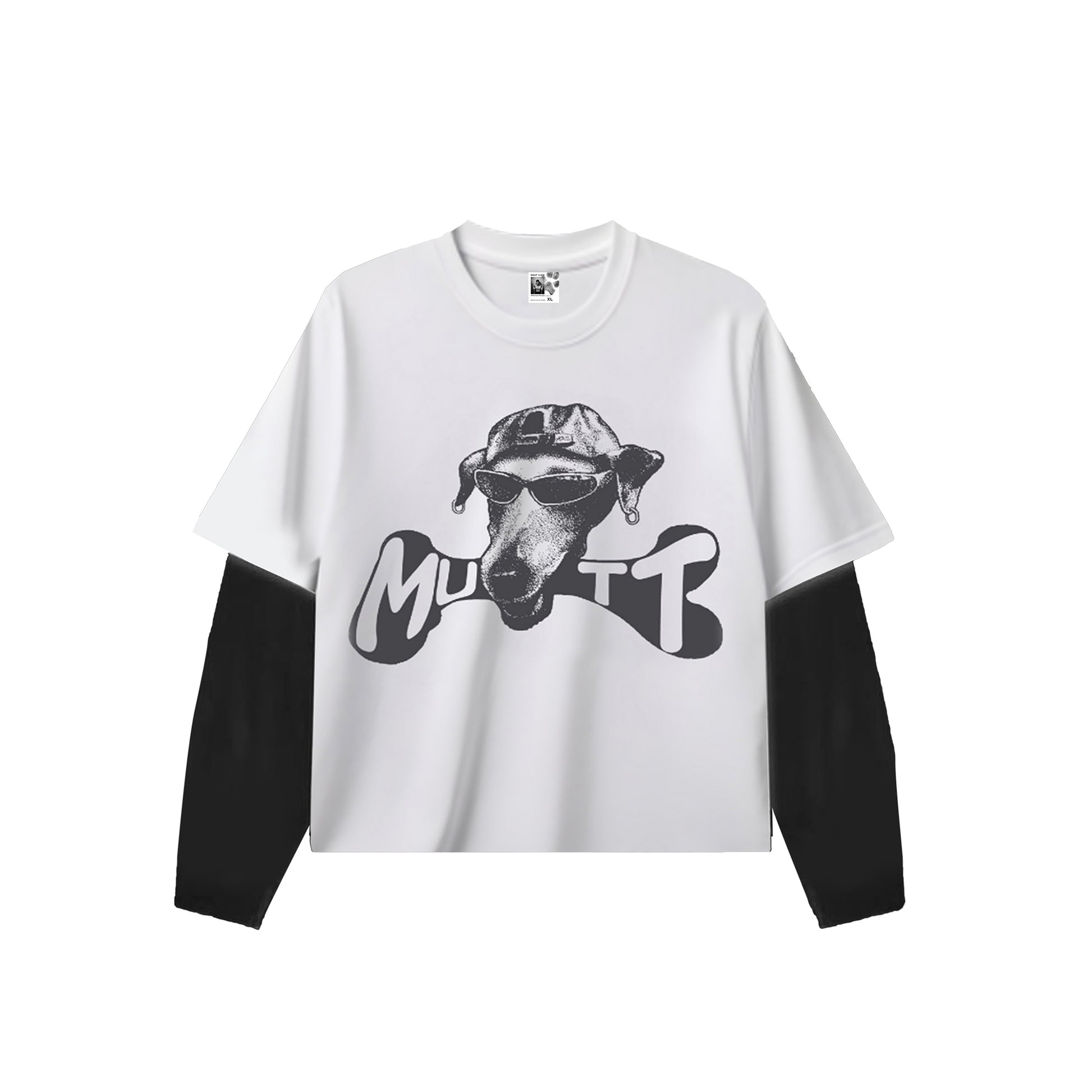 Step into bold streetwear energy with the MUTT Bone Collector Long Sleeve. Featuring a layered look with contrasting black sleeves under a crisp white tee, this piece carries the signature MUTT attitude front and center.